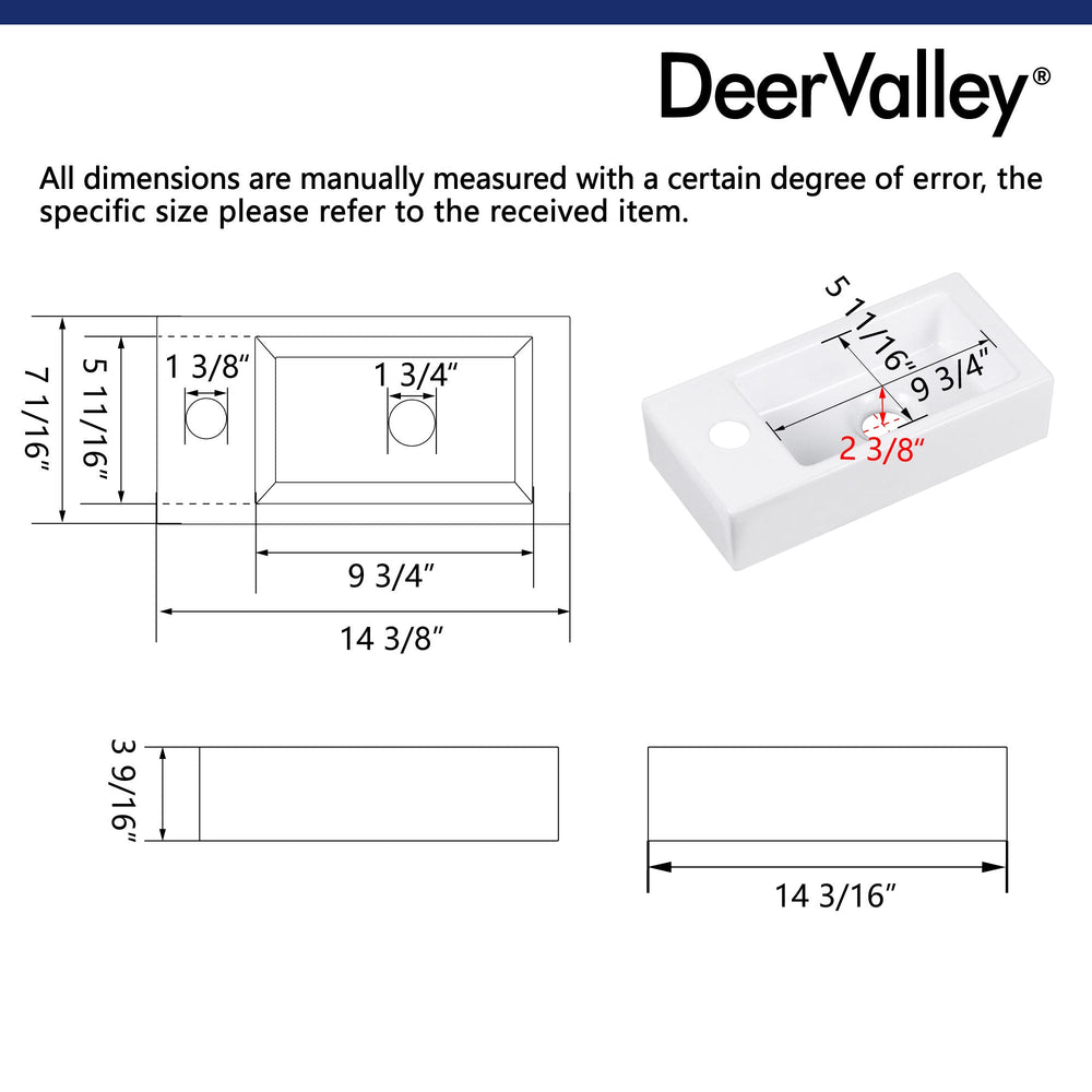 DeerValley wall mount bathroom sink gives a simplistic yet elegant style to your bathroom. This convenient wall-mount bathroom sink is particularly saving your room space. Maximize elbow room in a cramped bathroom with this small-scale sink that allows just enough space to wash hands and brush teeth without wasting space. It is made from an advanced ceramic that is extremely resistant to scratches and stains and will not fade over time.